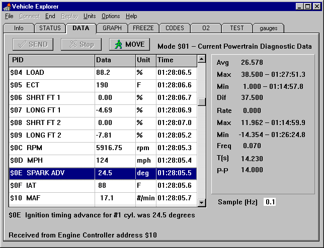 intake air temperature. The last session monitors all available parameters,