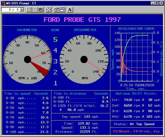 Bottom line, 1/4 mile in 16.2 seconds @ 86.8mph, with optimal shift points.